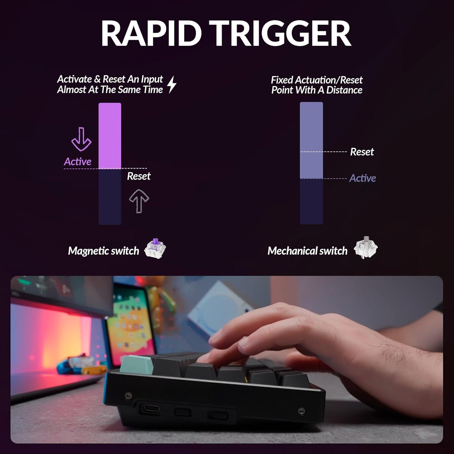 • Keychron K2 HE Rapid Trigger Wireless Custom Mechanical Keyboard with Hall Effect Gateron Double-Rail Magnetic Switch, QMK 2.4 GHz Bluetooth 5.2 RGB Compatible with Mac Windows Linux – Aluminum