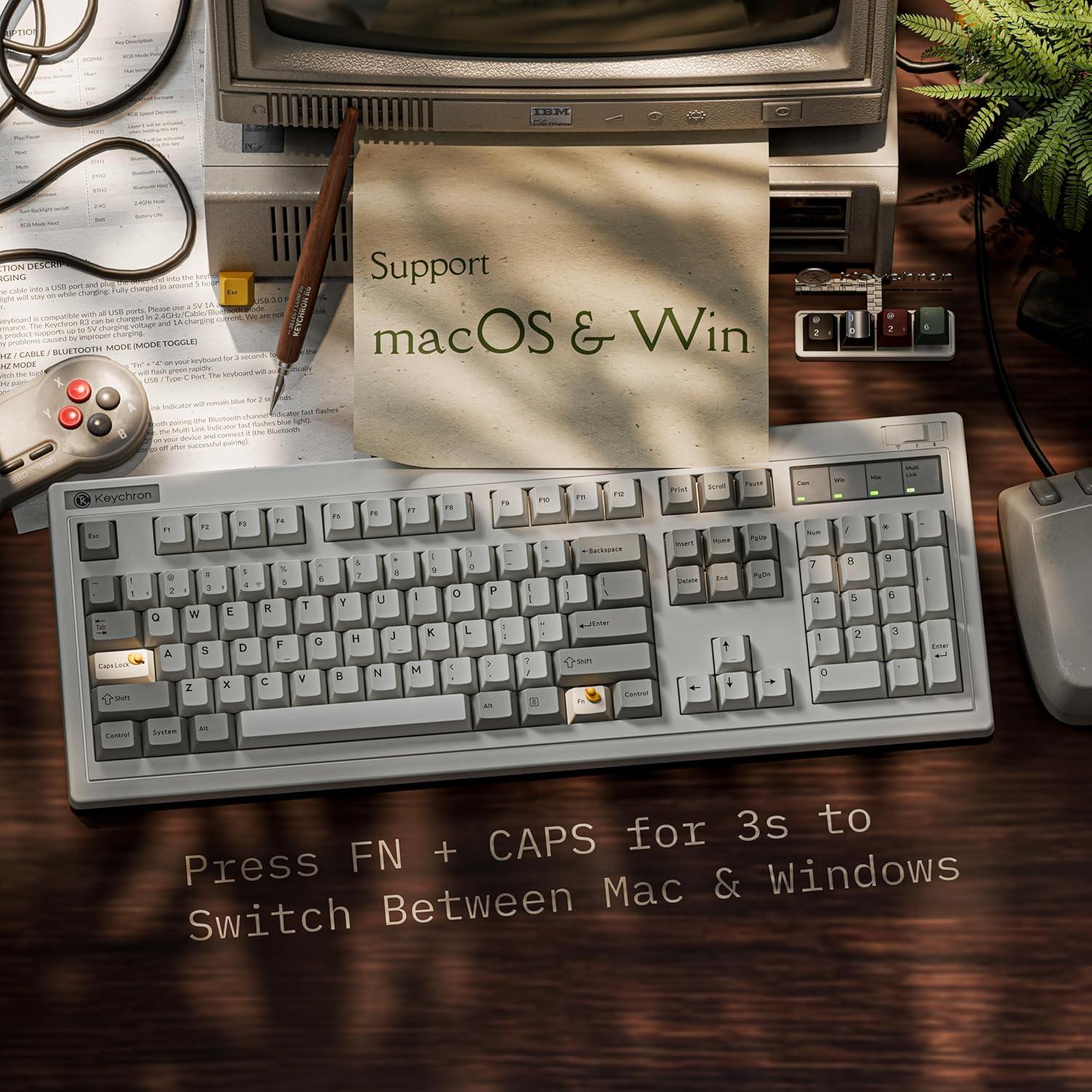 Keychron R6 Retro Wireless Mechanical Keyboard, 100% Full Size Hot Swappable RGB Super Banana Switch, QMK Tri-Mode(2.4 GHz/Bluetooth/Wired), Compatible with Mac PC Linux(Keychron Super Brown Switch)