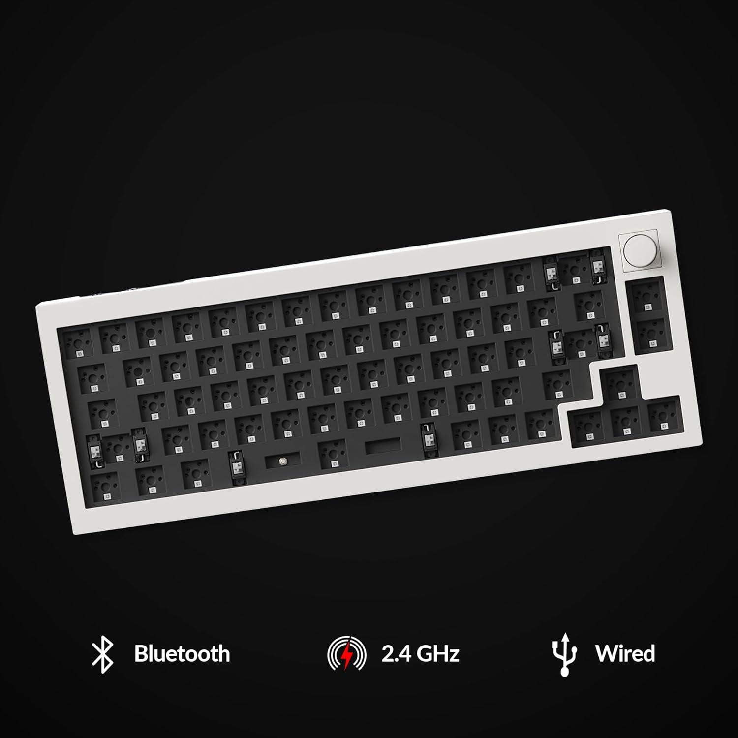 Keychron Q2 Max 65% Compact Custom Mechanical Gaming Keyboard Kit, 2.4 GHz/Bluetooth 5.1/Wired with QMK/VIA Programmable Knob, RGB Aluminum Barebones Keyboard for Mac Windows Linux – Black(White)