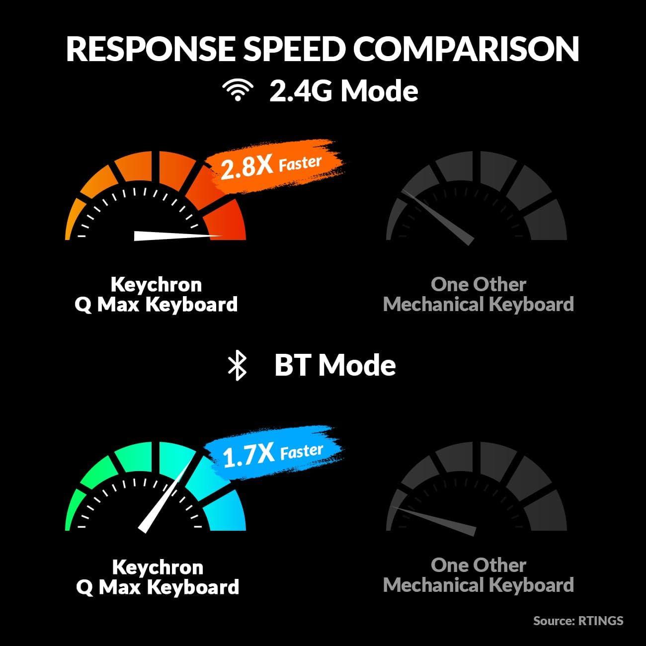 • Keychron Q2 Max 65% Compact Custom Mechanical Gaming Keyboard Kit, 2.4 GHz/Bluetooth 5.1/Wired with QMK/VIA Programmable Knob, RGB Aluminum Barebones Keyboard for Mac Windows Linux – Black(Black)