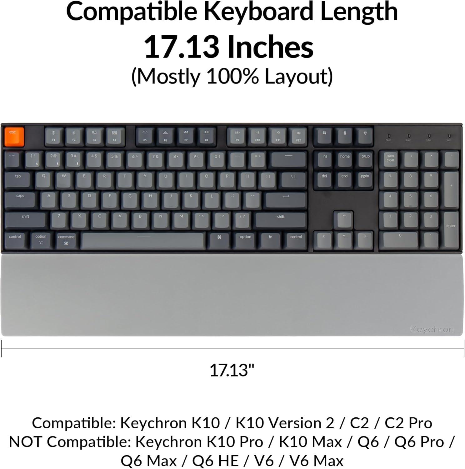 Keychron Gray Silicone Palm Rest – 17.13″ Wrist Rest for Full-Size Mechanical Keyboards, Fits K10 / C2 / C2 Pro – Ergonomic Wrist Support for Typing Comfort & Pain Relief(Gray)