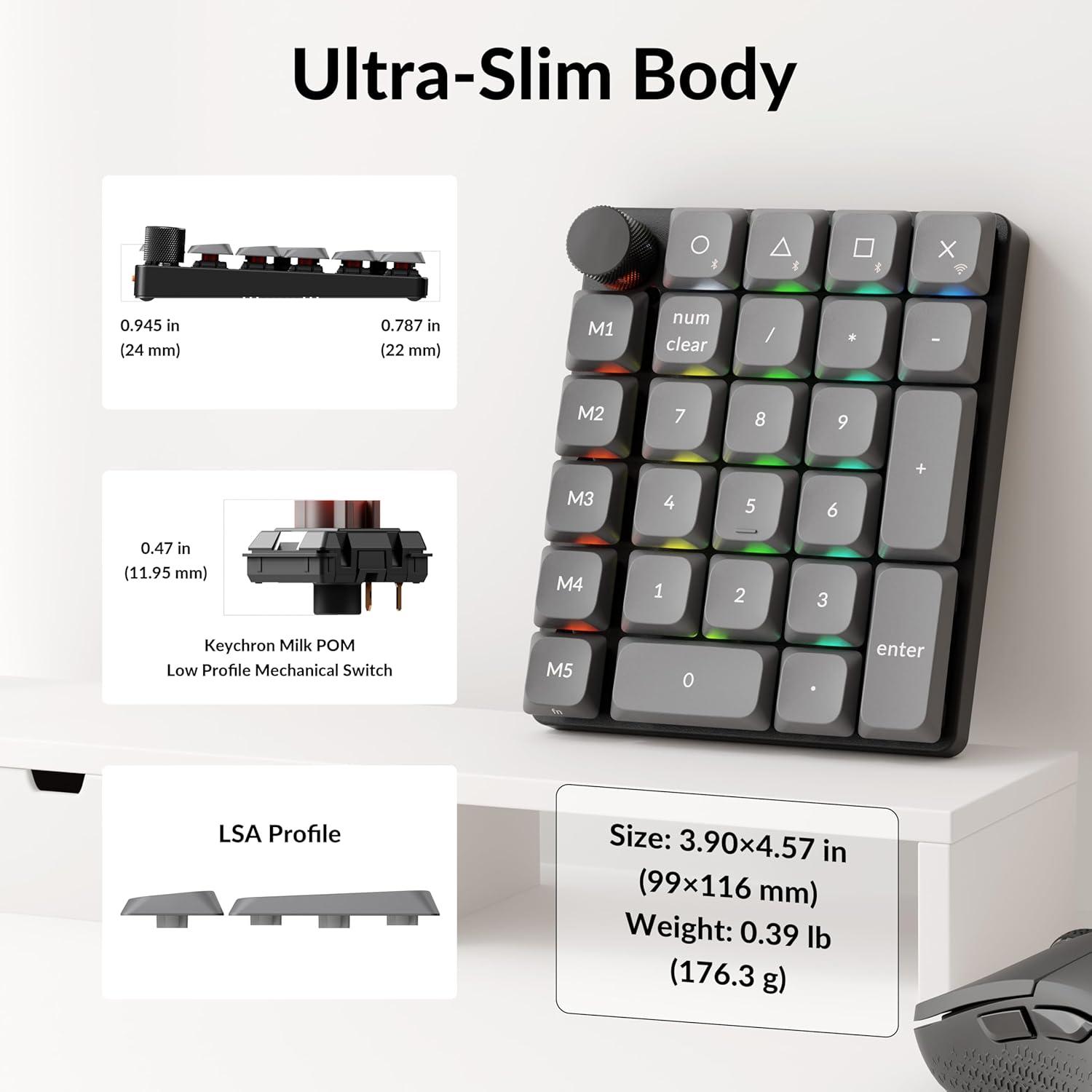 Keychron K0 Max Wireless Low-Profile Number Pad, QMK/VIA Programmable, Hot-Swappable Brown Switch, RGB Backlit, 2.4GHz & Bluetooth 5.3, 1000Hz Polling Rate, with Knob, for Windows/Mac(Brown Switch)