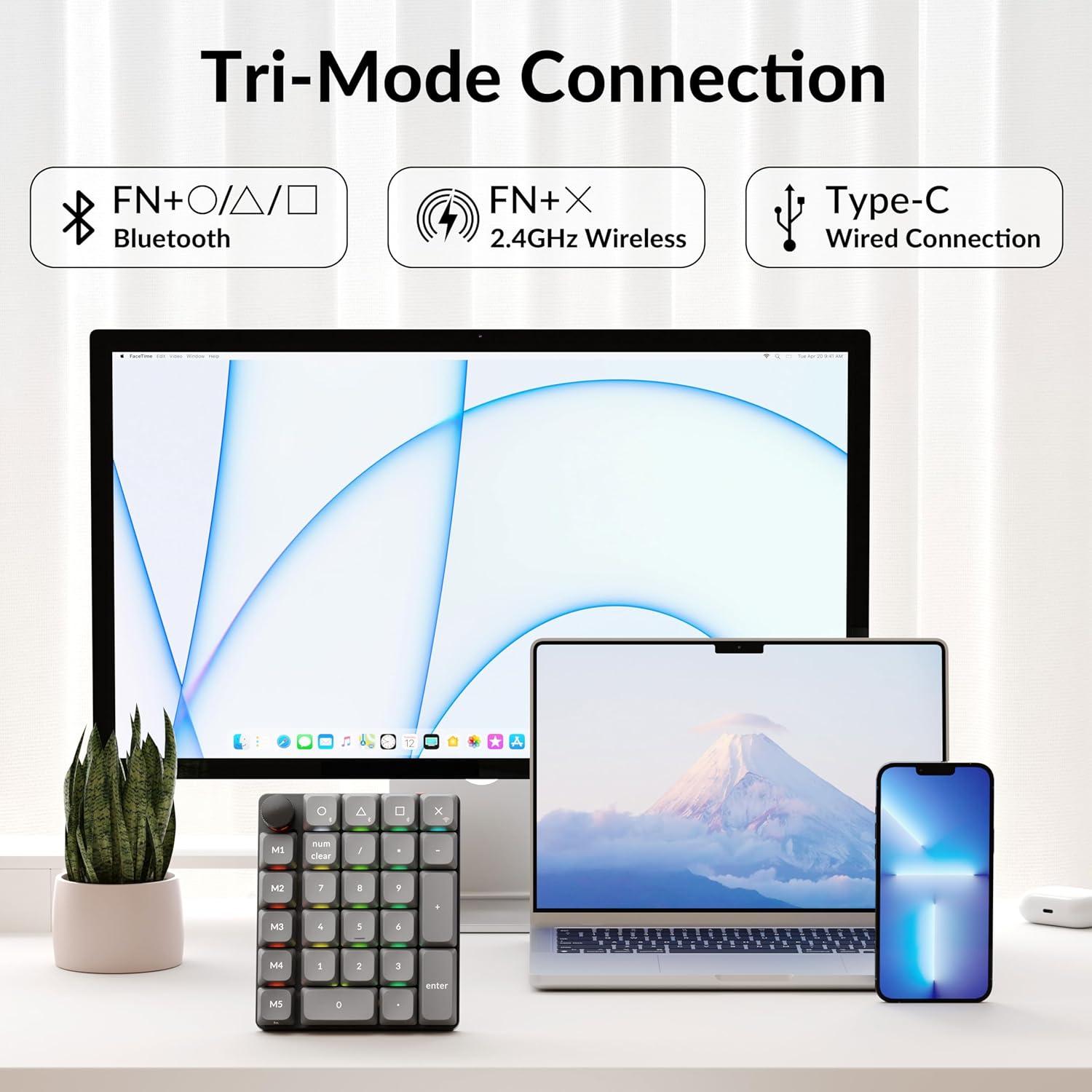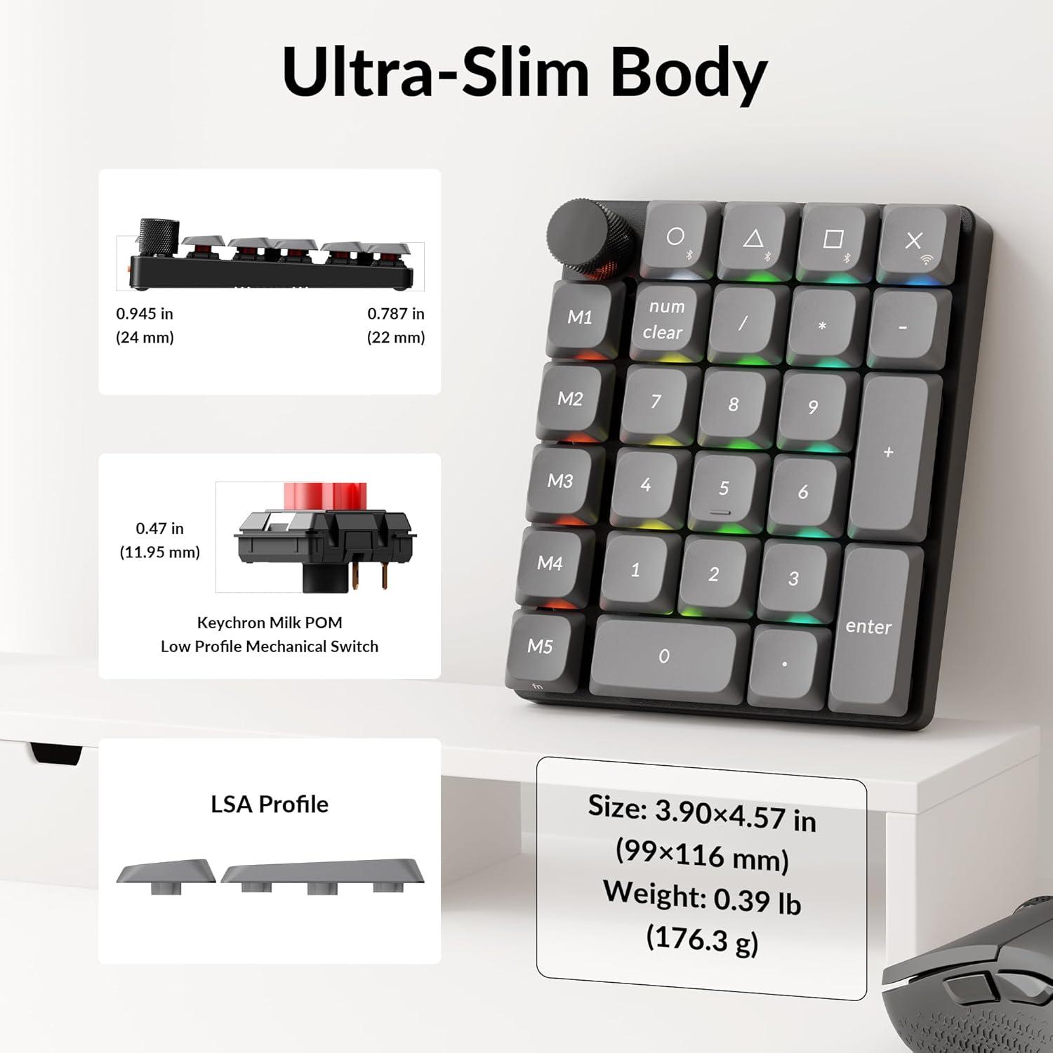 Keychron K0 Max Wireless Low-Profile Number Pad, QMK/VIA Programmable, Hot-Swappable Brown Switch, RGB Backlit, 2.4GHz & Bluetooth 5.3, 1000Hz Polling Rate, with Knob, for Windows/Mac(Red Switch)