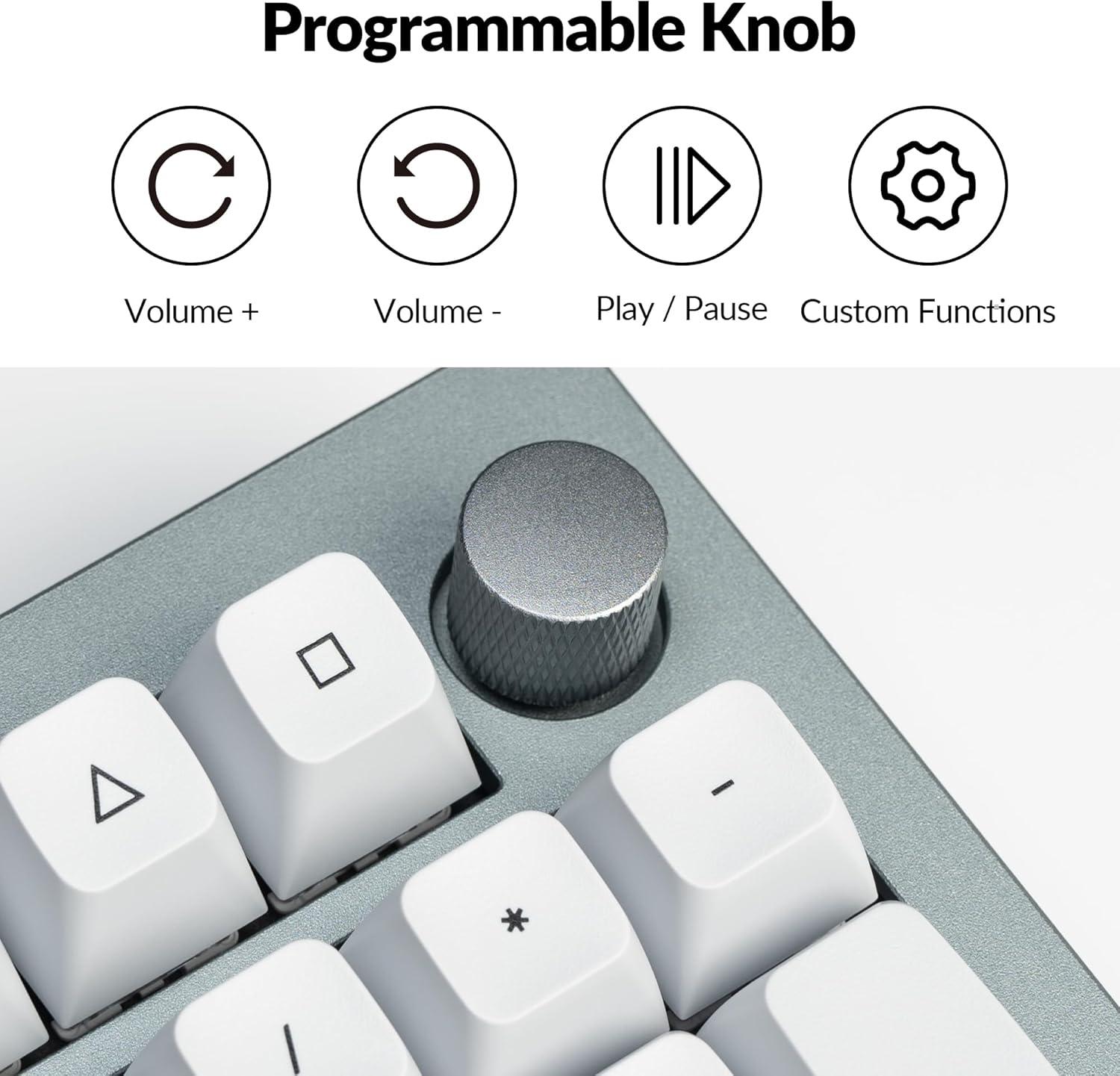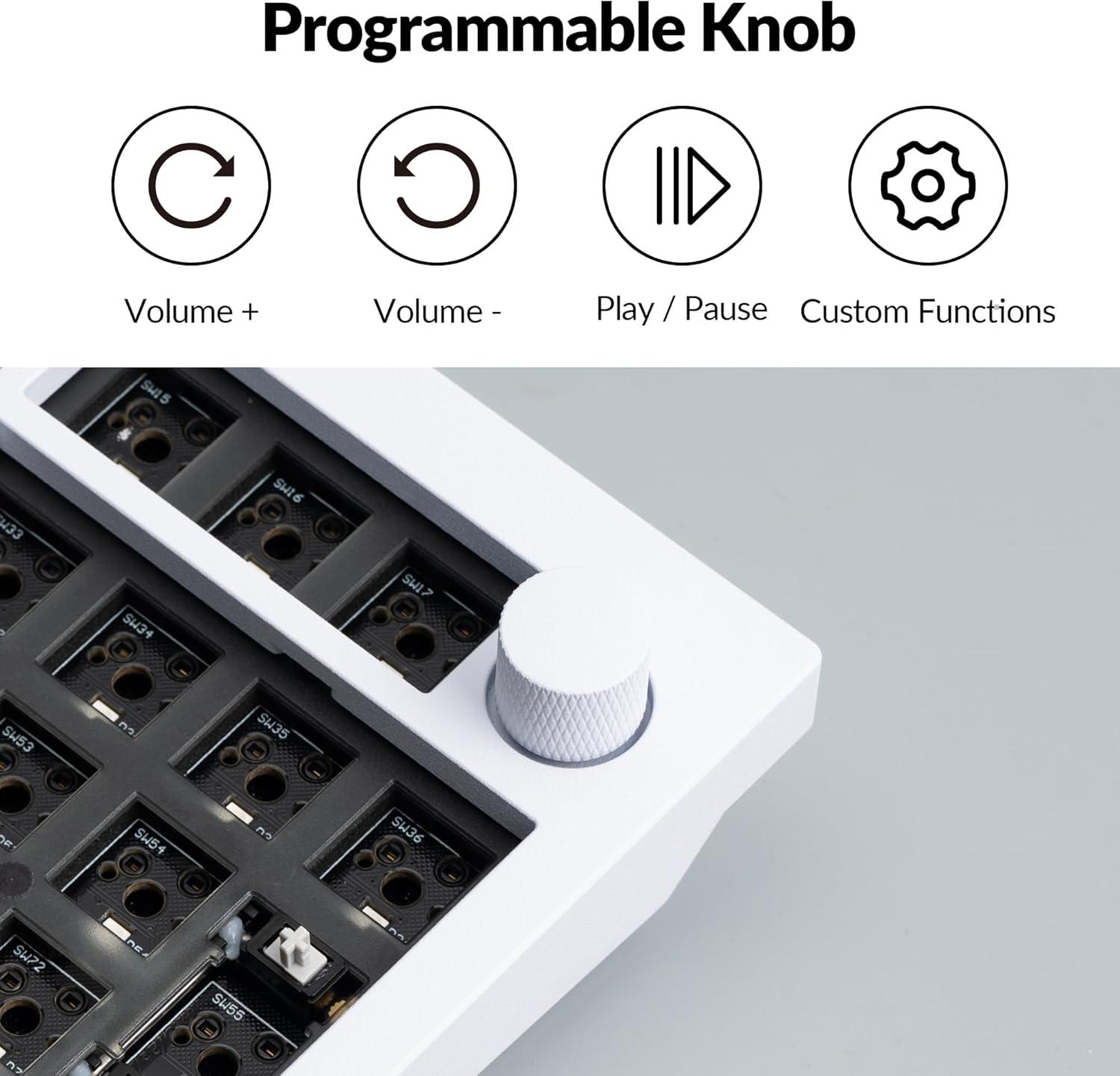 • Keychron Q5 Pro Custom Wireless QMK/VIA Mechanical Keyboard Barebone, 96% Layout with Programmable Knob Double-Gasket Design, Hot-Swappable RGB Backlit Compatible with Mac Windows Linux – Gray(White)