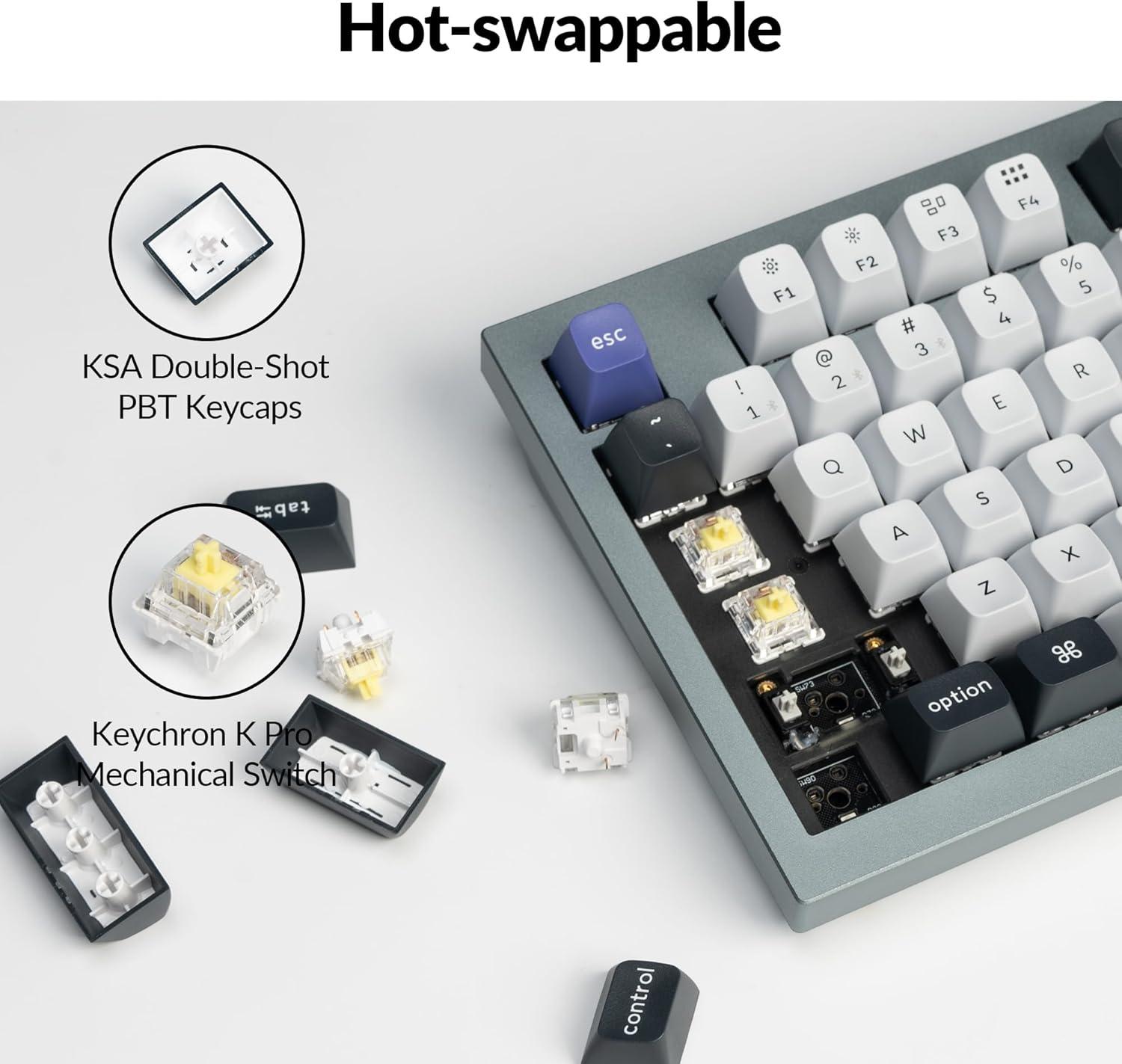 • Keychron Q1 Pro Wireless Custom Mechanical Keyboard, QMK/VIA Programmable Full Aluminum 75% Layout Bluetooth/Wired RGB with Hot-swappable Keychron K Pro Banana Switch Compatible with Mac Windows Linux(Hot-swap Keychron K Pro Banana Switch)