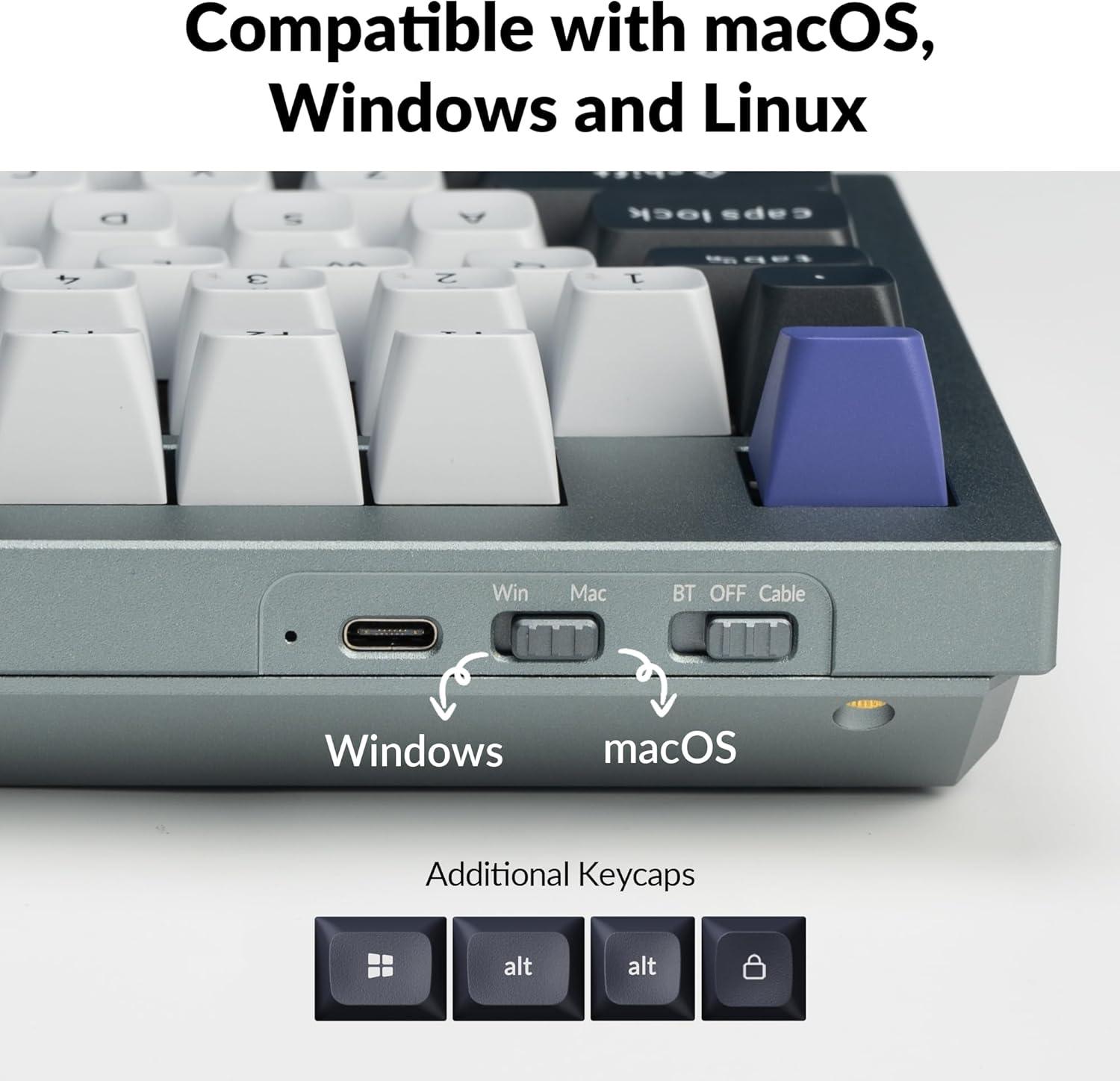imageKeychron B1 Pro UltraSlim ZMKLauncher Wireless Bluetooth 24 GHzWired Connection Keyboard for Mac Windows Linux  WhiteRetro Blue