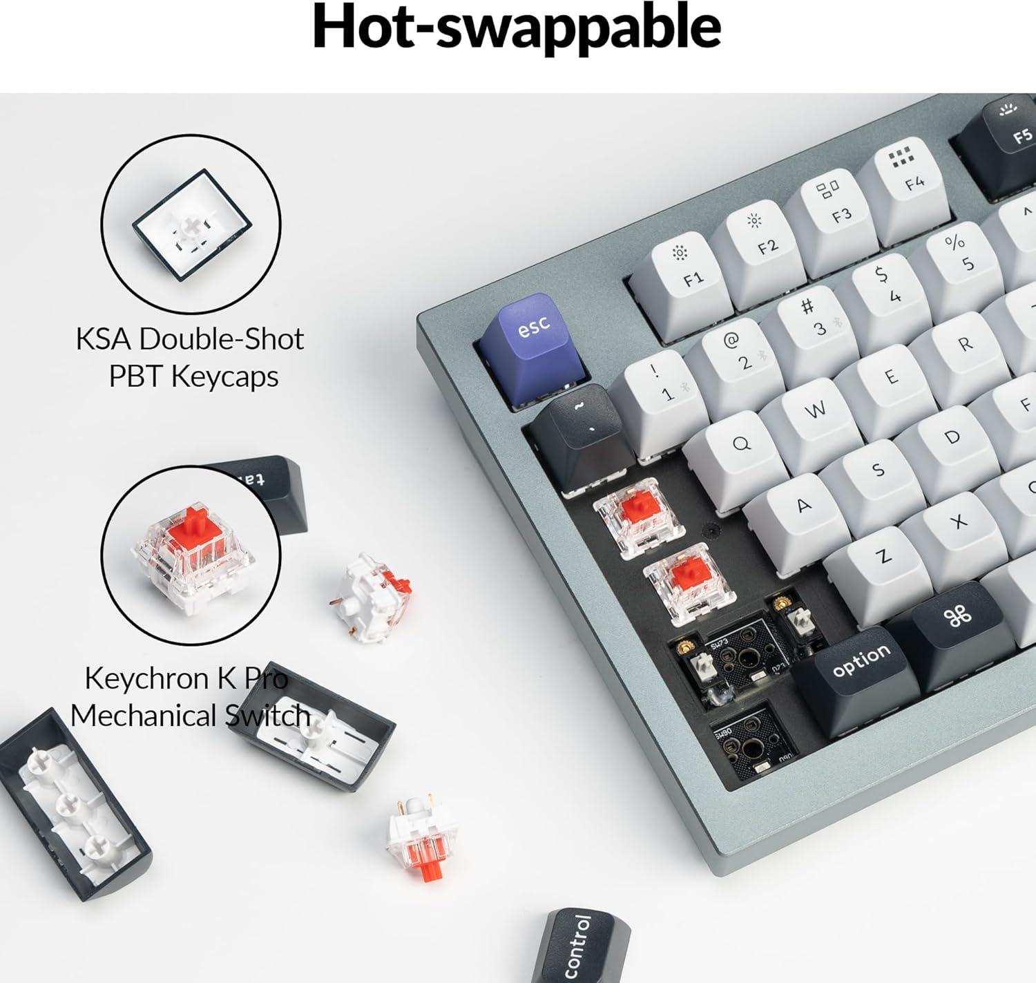 • Keychron Q1 Pro Wireless Custom Mechanical Keyboard, QMK/VIA Programmable Full Aluminum 75% Layout Bluetooth/Wired RGB with Hot-swappable Keychron K Pro Brown Switch Compatible with Mac Windows Linux(Hot-swap Keychron K Pro Red Switch)