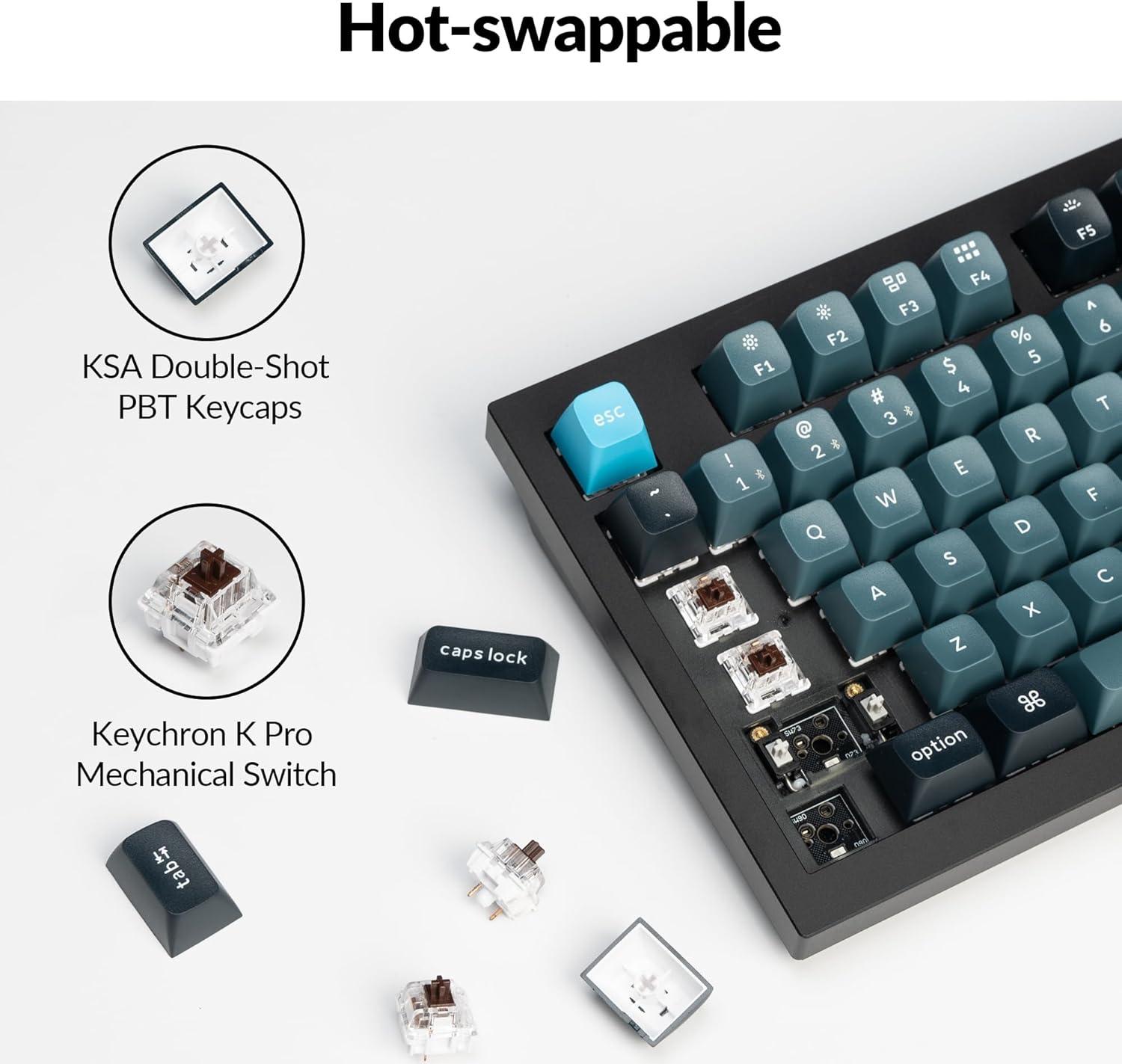 • Keychron Q1 Pro Wireless Custom Mechanical Keyboard, QMK/VIA Programmable Full Aluminum 75% Layout Bluetooth/Wired RGB with Hot-swappable Keychron K Pro Brown Switch Compatible with Mac Windows Linux(Hot-swap Keychron K Pro Brown Switch)