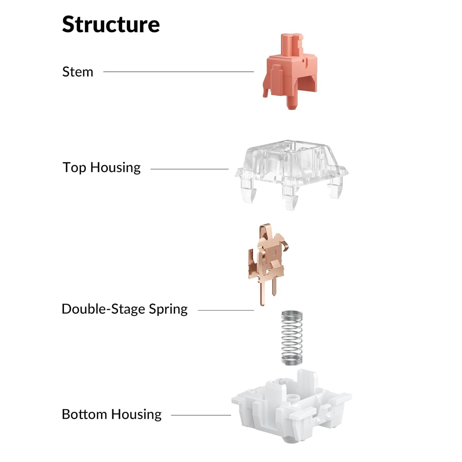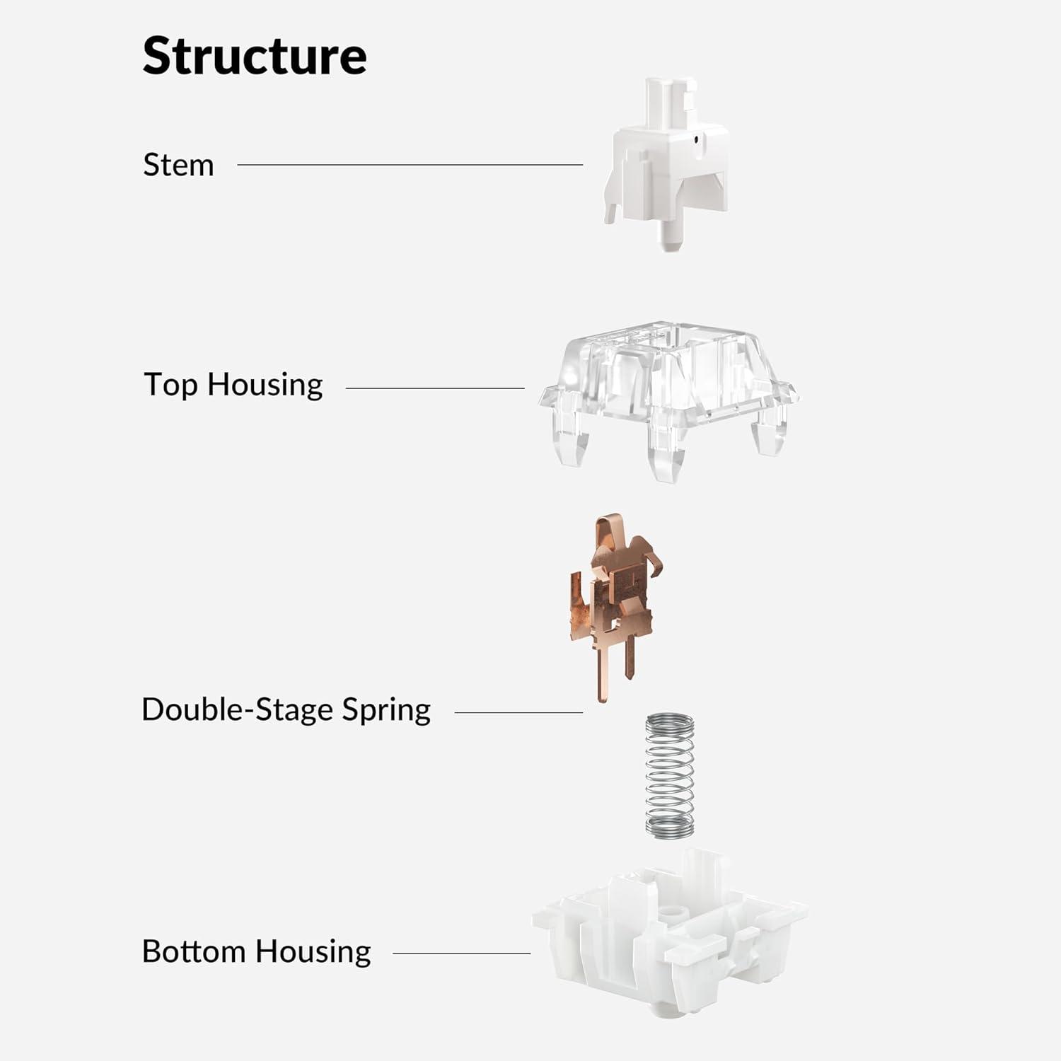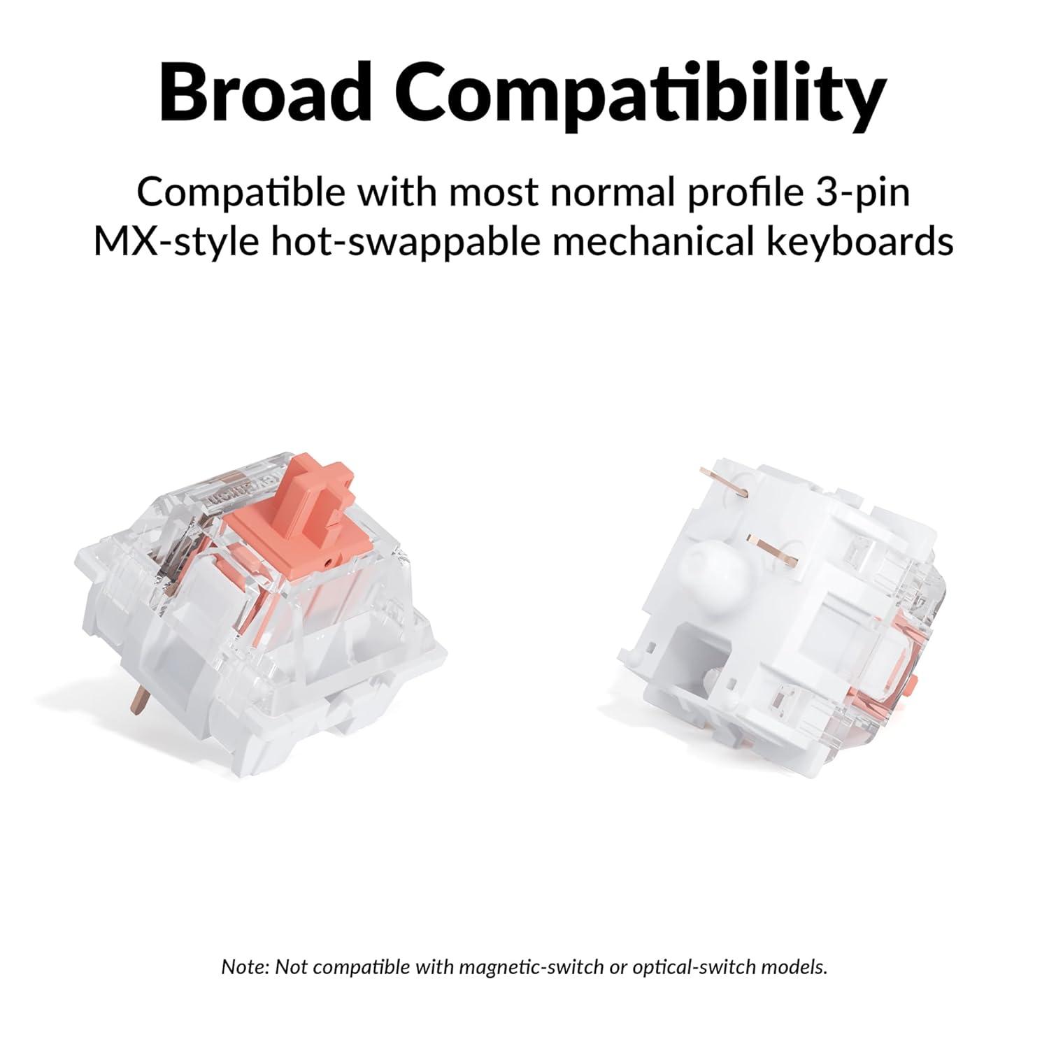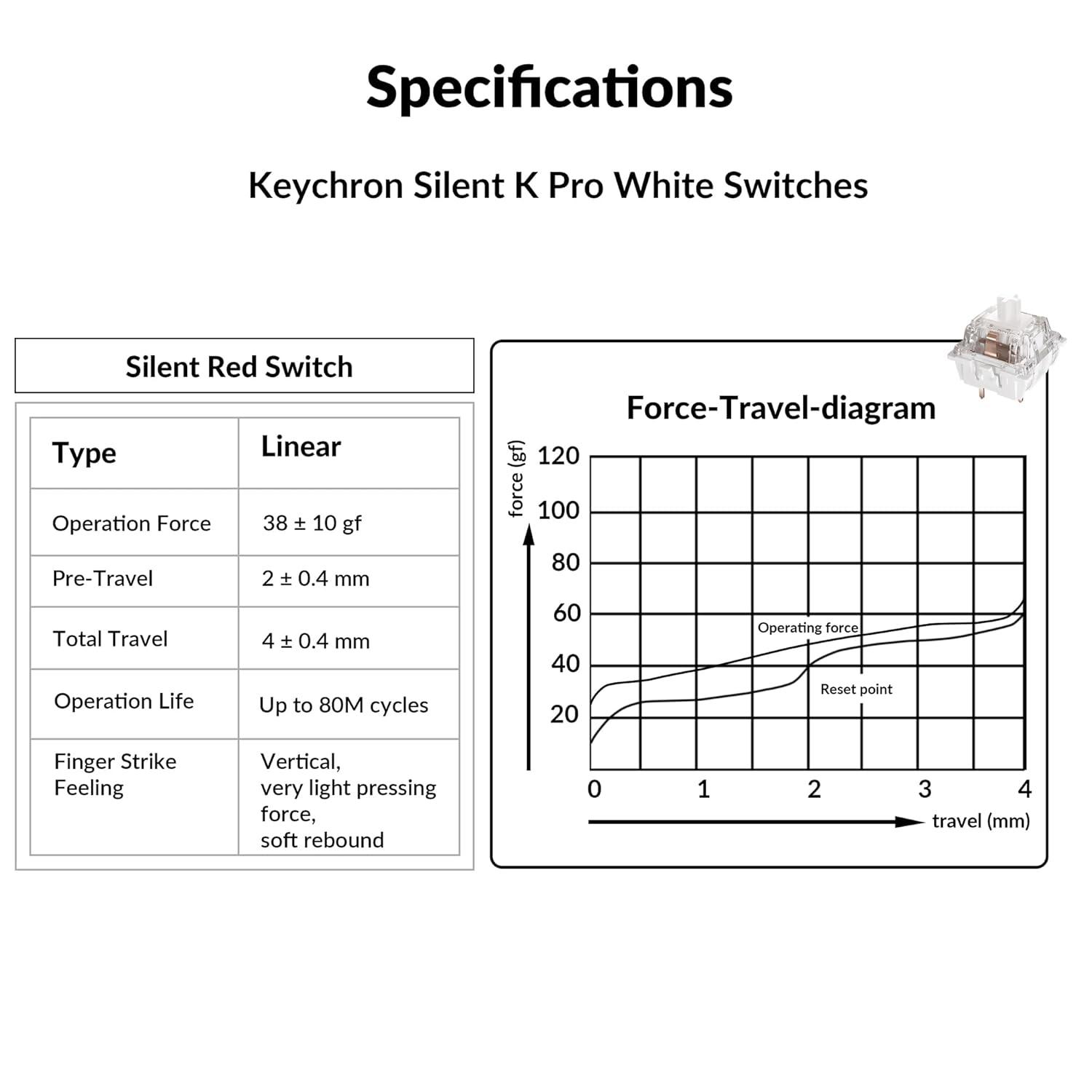 • Keychron Silent K Pro Red Mechanical Switches – 110PCS, Quiet Linear 45gf, Factory Pre-Lubed, SMD-LED Compatible, 3-Pin Hot-Swappable, Smooth Typing for Gaming & Office(White 38gf)