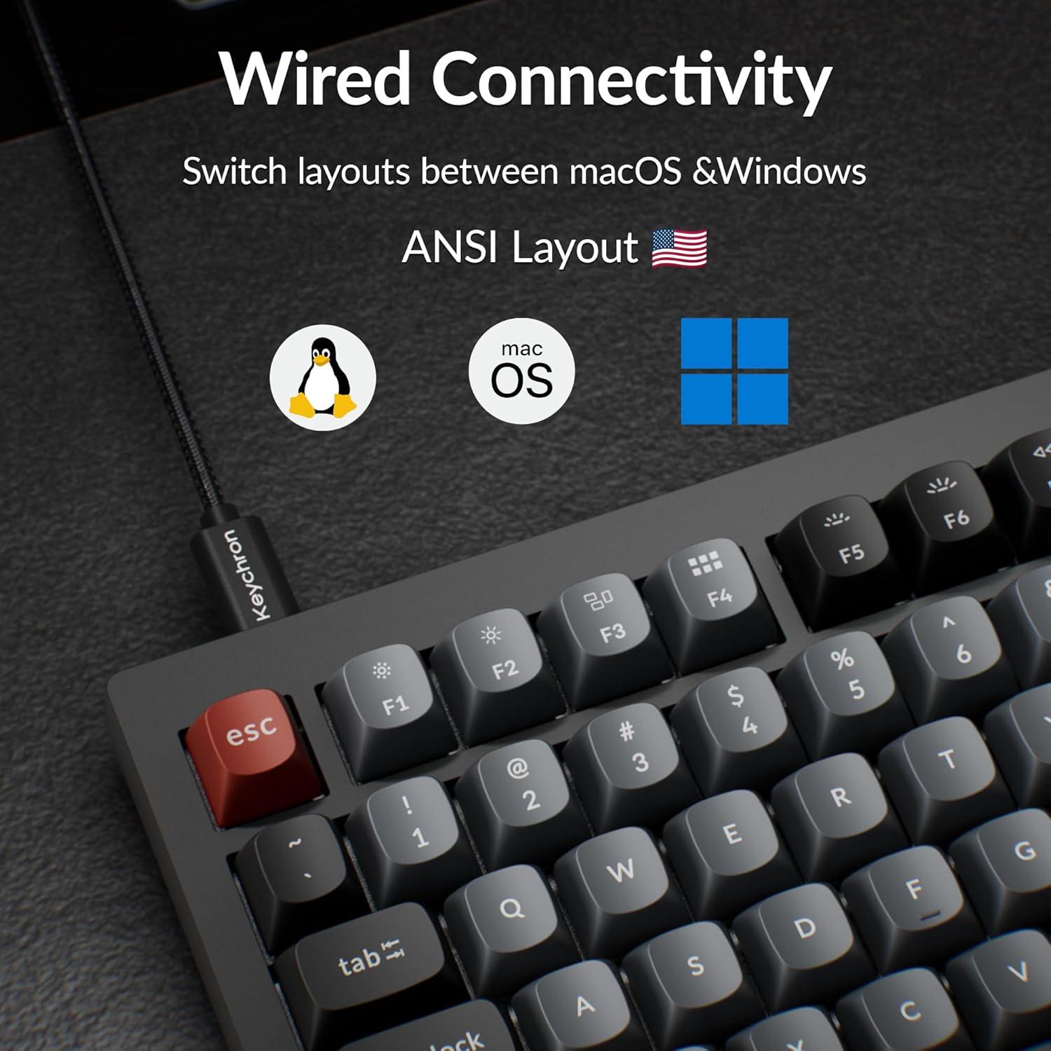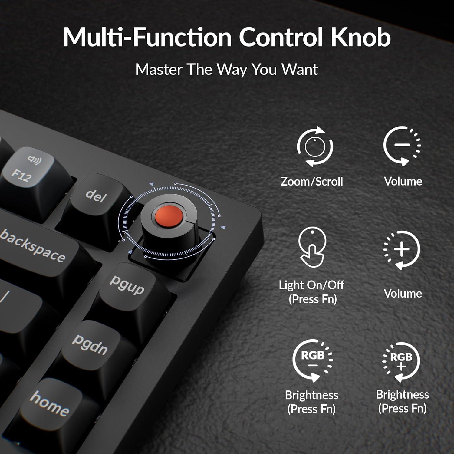 • Keychron V1 75% Wired Mechanical Keyboard, QMK/VIA Programmable, Hot-swappable K Pro Brown Switches, Compatible with Mac Windows Linux – Carbon Black(Hot-swap Keychron K Pro Red Switch)