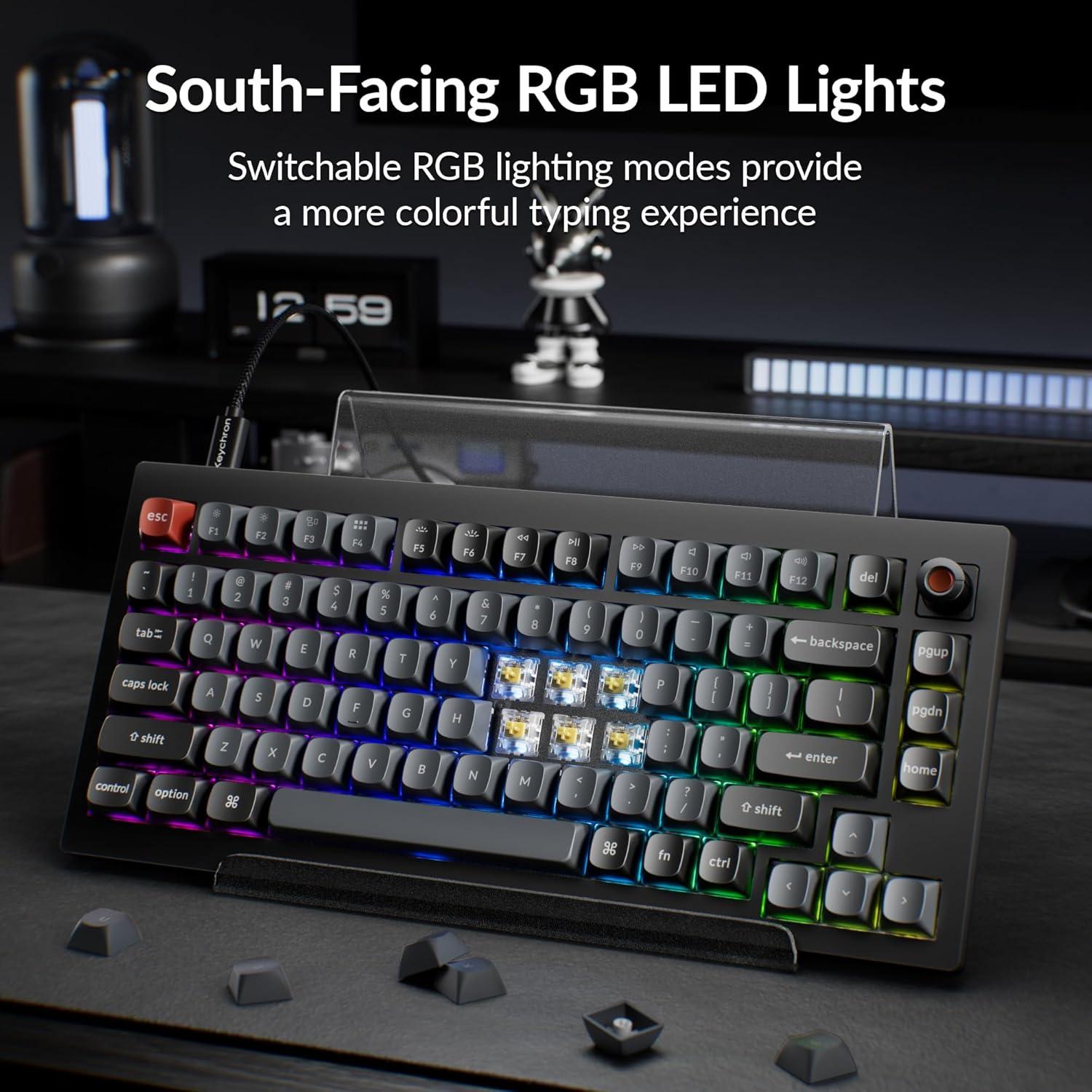 • Keychron V1 8K 75% Wired Mechanical Keyboard with Programmable Knob, OSA PBT Keycaps, Hot-swappable with Keychron Super Brown Switchs, 8000 Hz Polling Rate, RGB Backlit for Mac Windows Linux(Keychron Banana Switch)