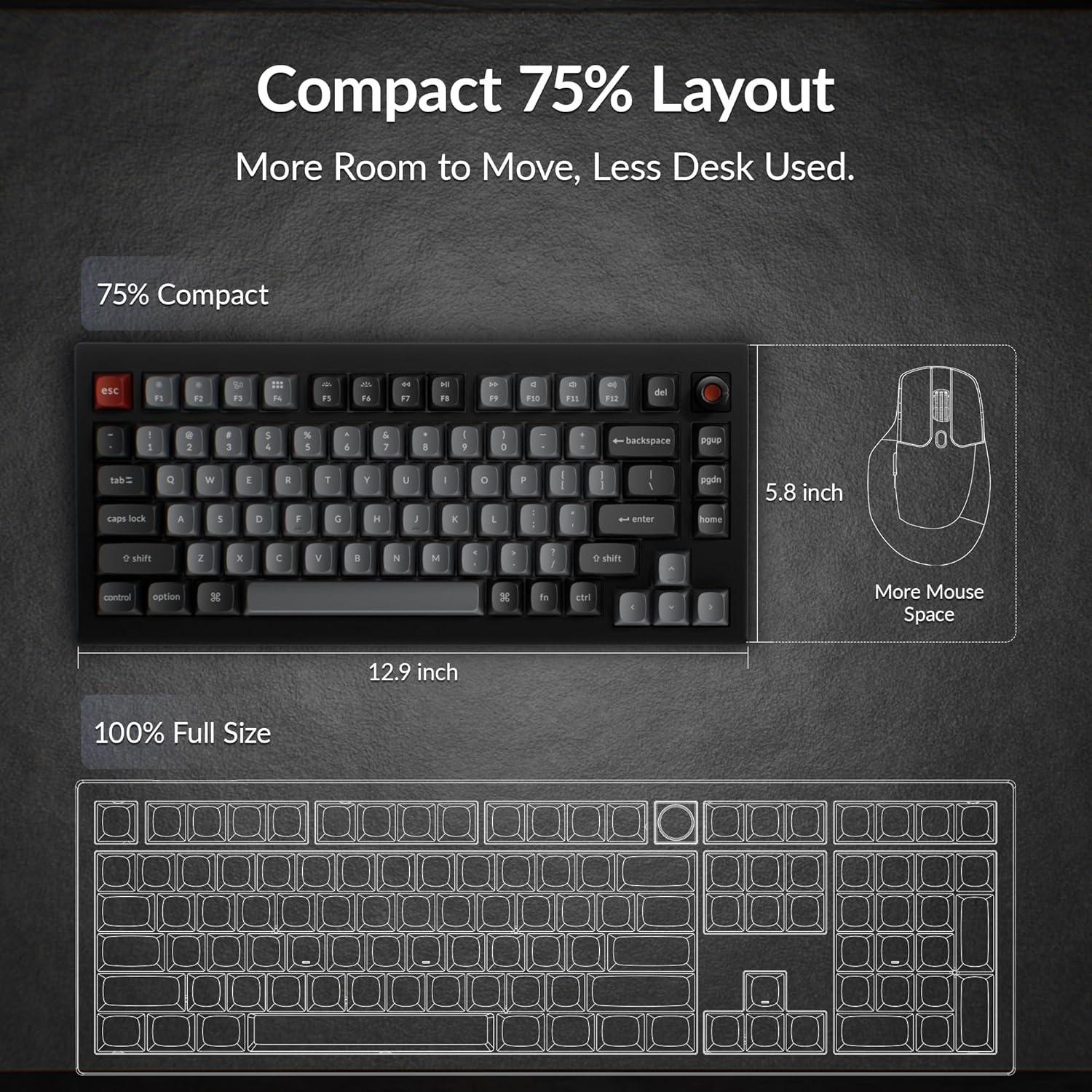 • Keychron V1 8K 75% Wired Mechanical Keyboard with Programmable Knob, OSA PBT Keycaps, Hot-swappable with Keychron Super Brown Switchs, 8000 Hz Polling Rate, RGB Backlit for Mac Windows Linux(Keychron Red Switch)