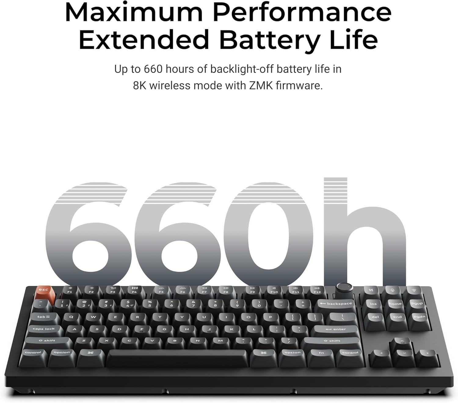 • Keychron V3 Ultra TKL Mechanical Keyboard Wireless, ZMK Custom 8K Polling Rate, 2.4 GHz/Bluetooth/Wired with RGB Backlit, Pre-Lubed Silk POM Brown Switch Hot-Swappable for Mac Windows Linux(Brown Switch)
