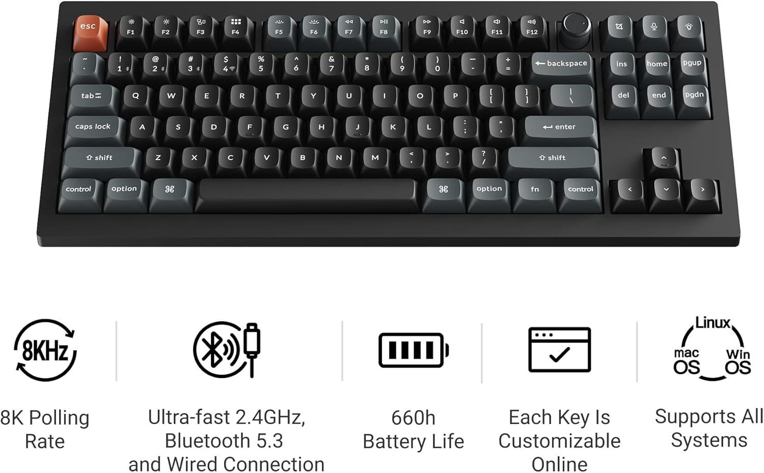 • Keychron V1 Ultra 8K Wireless 2.4 GHz & Bluetooth Custom Mechanical Keyboard Launcher Web App with Hot-swappable Keychron Silk POM Red Switches PBT Keycaps for Mac Windows Linux(Hot-swap Keychron Silk POM Red Switch)