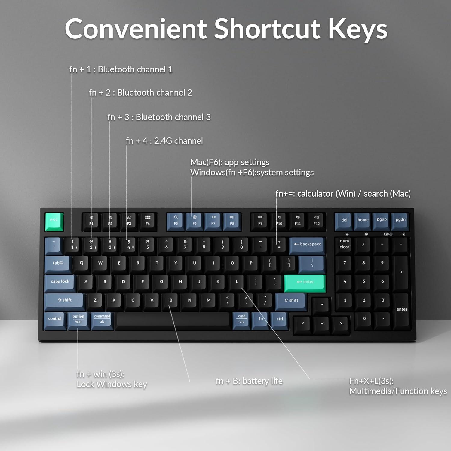 Keychron B35 Wireless Keyboard, 2.4 GHz/Bluetooth 96% Layout Keyboard with Numeric Keypad Silent Typing Launcher Support Ergonomic Angle Compatible with Mac Windows Linux