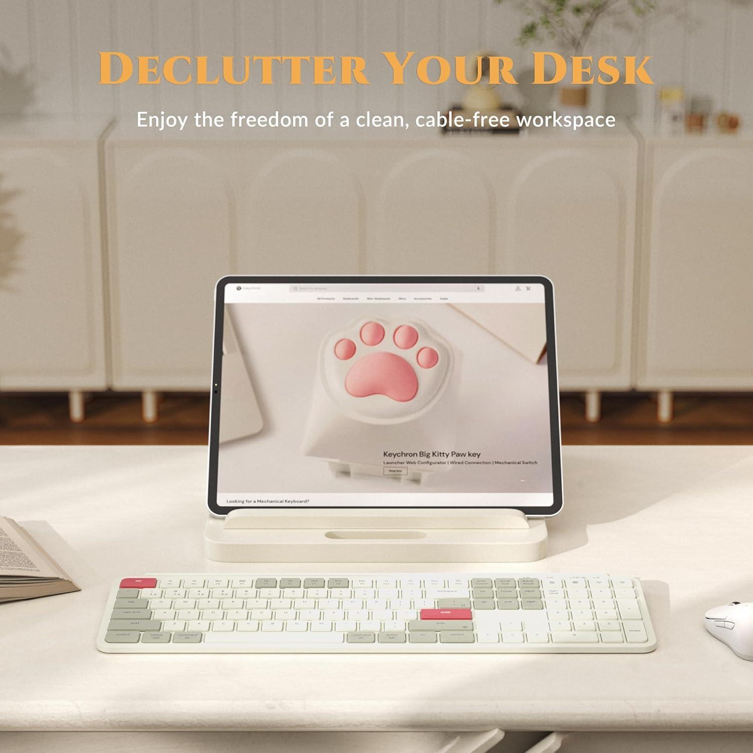 Keychron B6 Pro Ultra-Thin Wireless Keyboard, Full-Size ZMK with Numeric Keypad Quiet Typing, 2.4 GHz/Bluetooth 5.2/Wired Connection Long Battery Life, Compatible with Mac Windows Linux – Ivory White(Retro Red)
