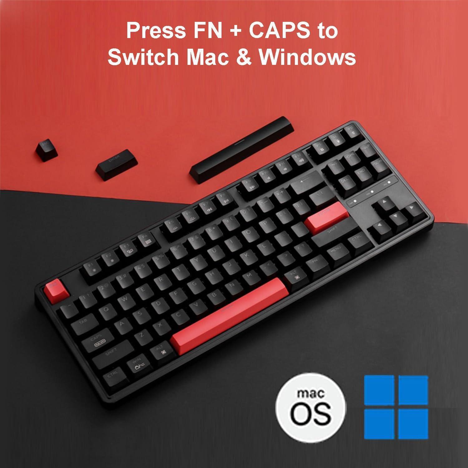 Easy toggle between macOS and Windows: Press the key combo FN + CAPS to instantly change the keyboard working system to Mac / Win. And it accommodates universal keycaps compatible with both systems.