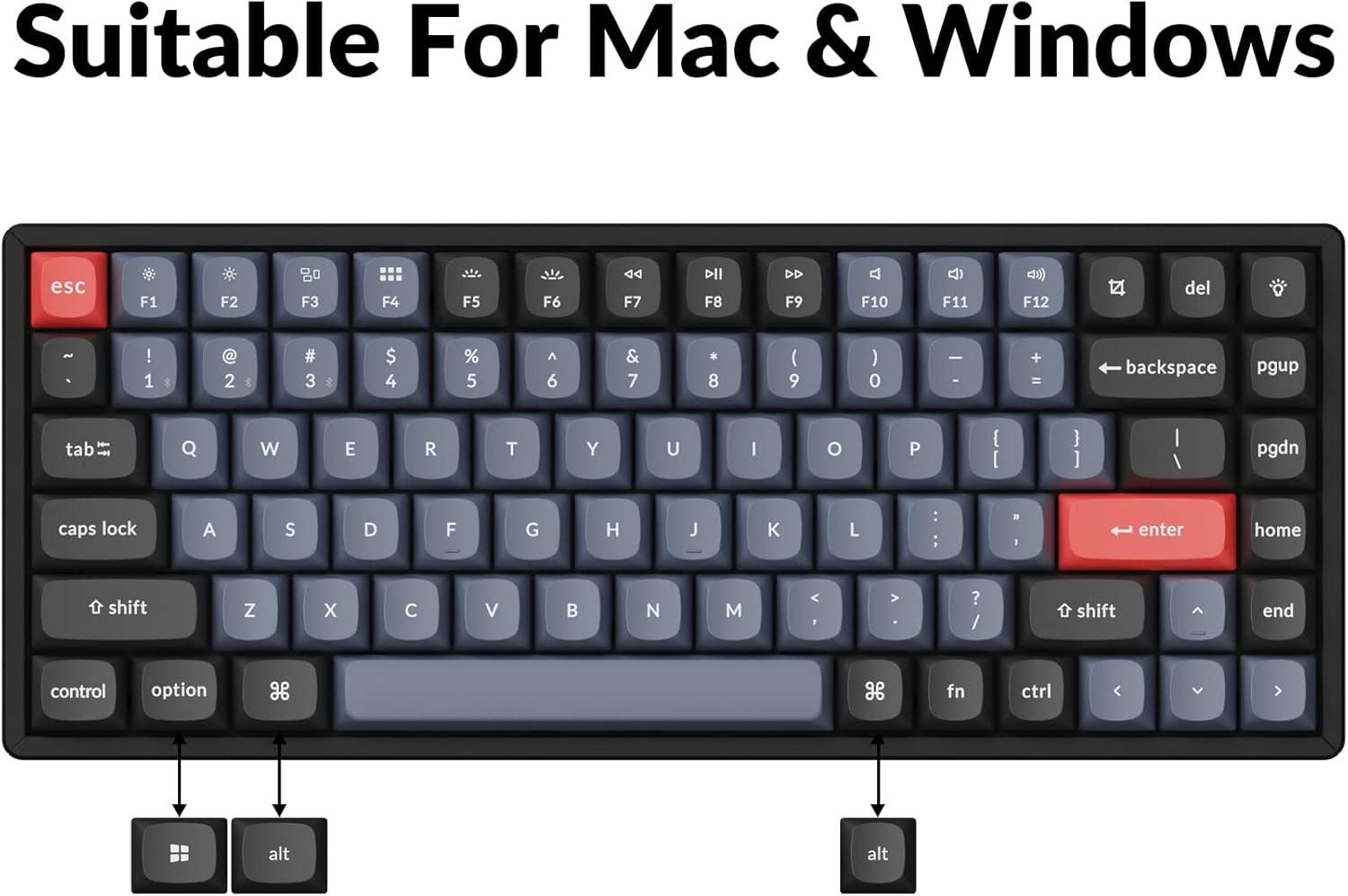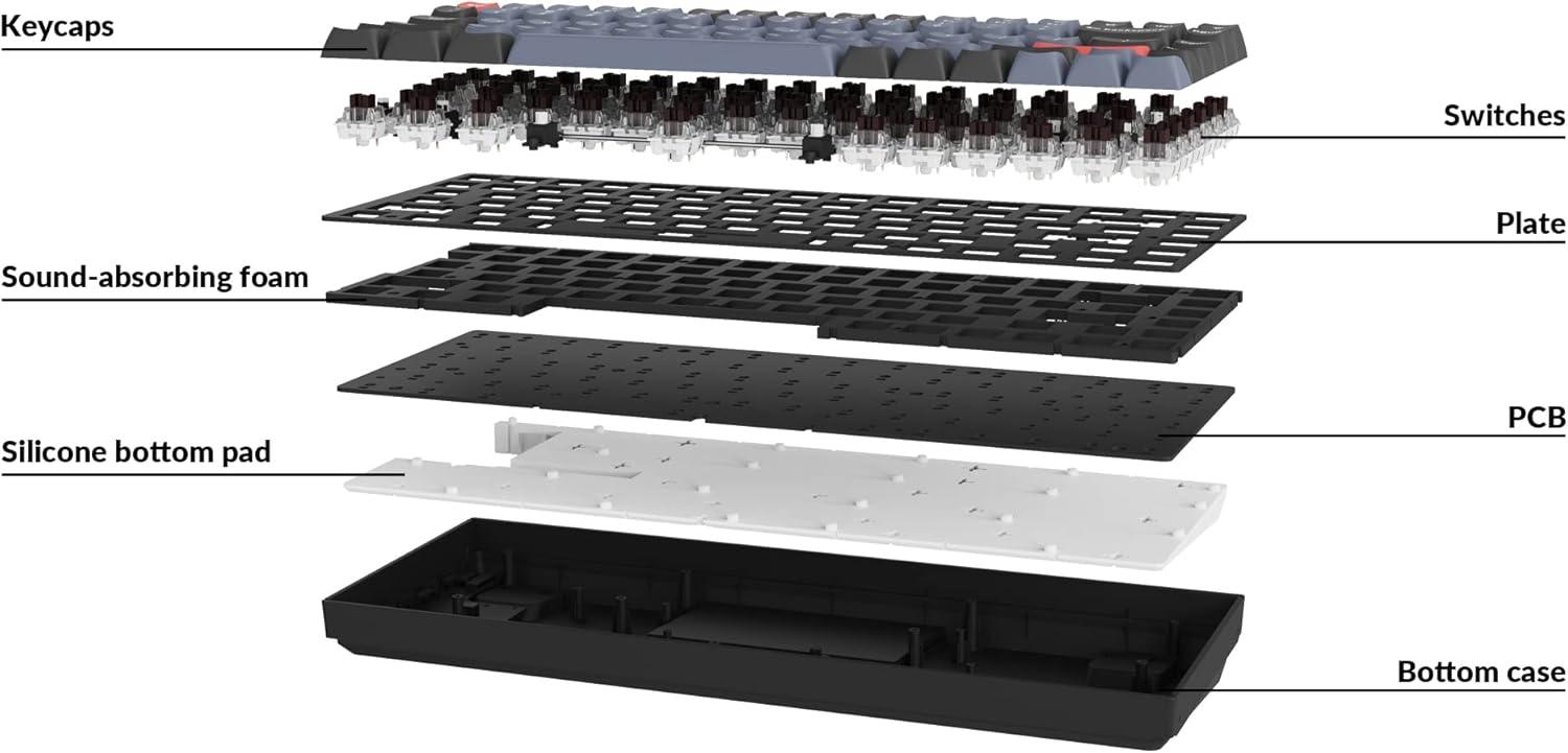 Hot-swappable: The K2 Pro hot-swappable sockets are mounted on the PCB, so you can hot-swap every switch on the K2 Pro with almost all of the 3pin and 5pin MX style mechanical switches on the market (including Cherry, Gateron, Kailh, Panda, etc.) without soldering. Also integrated the PCB-mounted screw-in stabilizers for a smoother typing experience with less wobbliness on the big keys such as space bar, shift, enter, and backspace. The Keychron K2 Pro also supports third-party screw-in PCB stabilizers.