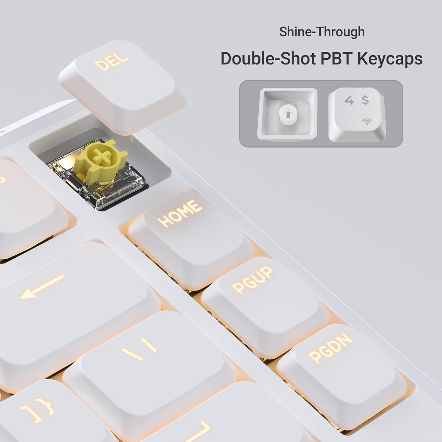 Doubleshot Low Profile PBT Shine-Through Keycaps & Per-Key RGB: With a 1.3 mm actuation—about 35% faster than standard switches—it offers smooth, precise travel and lasts up to 50 million keypresses. Comes with more than 22 types of RGB backlight settings (as well as a static white backlight option). The J1 features Per-Key RGB and Mix RGB, letting you customize the color of each key individually with full control.