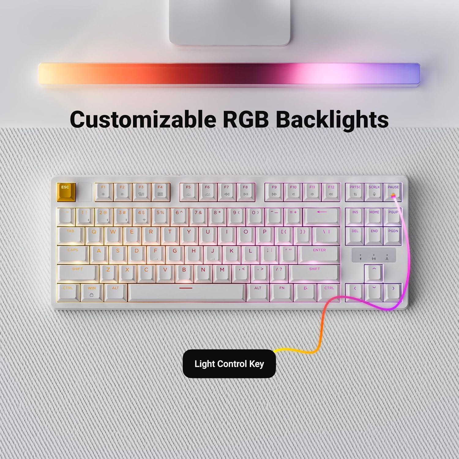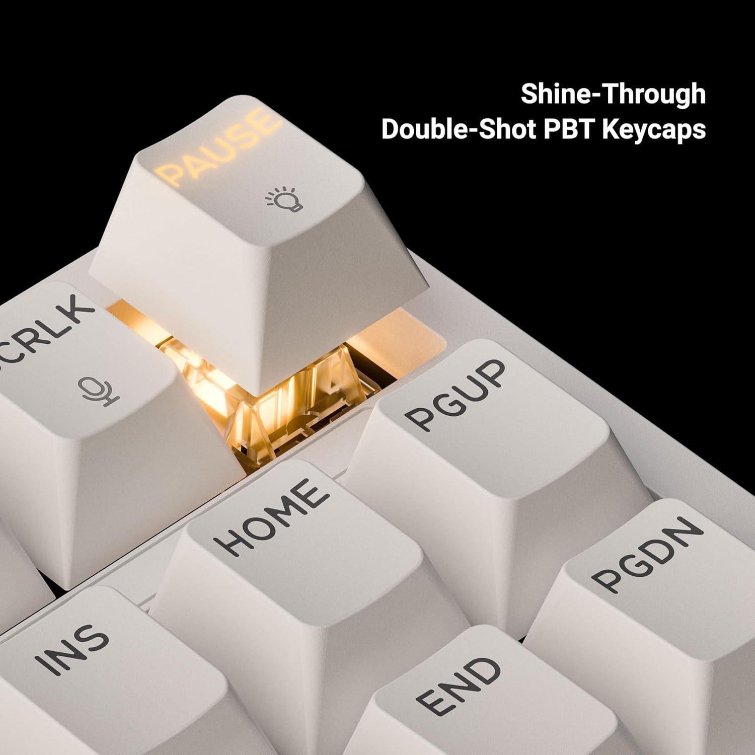 Legend clarity meets vibrant RGB: Thick 1.5mm PBT keycaps resist oil and shine, while translucent doubleshot molding amplifies 16.8M-color RGB effects (8 preset modes + custom gradients). Perfect for low-light gaming setups and design studios