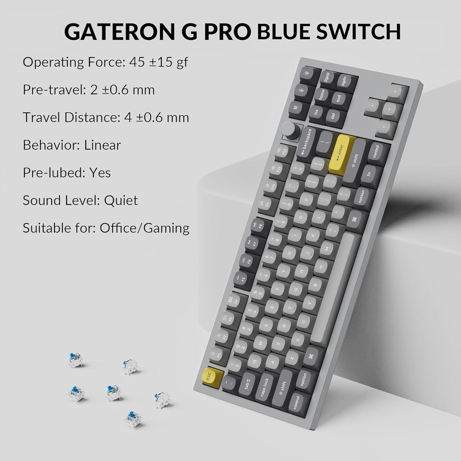 Keychron Q3 Wired Custom Mechanical Keyboard Knob Version, TKL Tenkeyless QMK/VIA Programmable Macro with Hot-swappable Gateron G Pro Blue Switch Double Gasket Compatible with Mac Windows Linux (Grey)(Hot-swap Gateron G Pro Blue Switch)