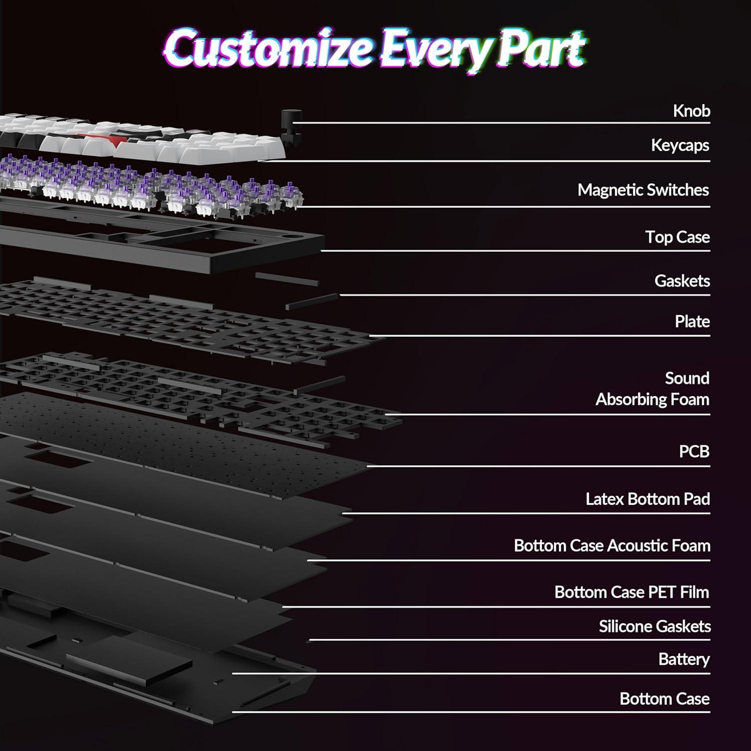Hot-Swappable: Hall Effect magnetic switches use magnetic detection instead of physical contact, making them easy to swap with compatible Hall Effect switches. Enjoy effortless switch customization and longevity without wear from physical contacts.