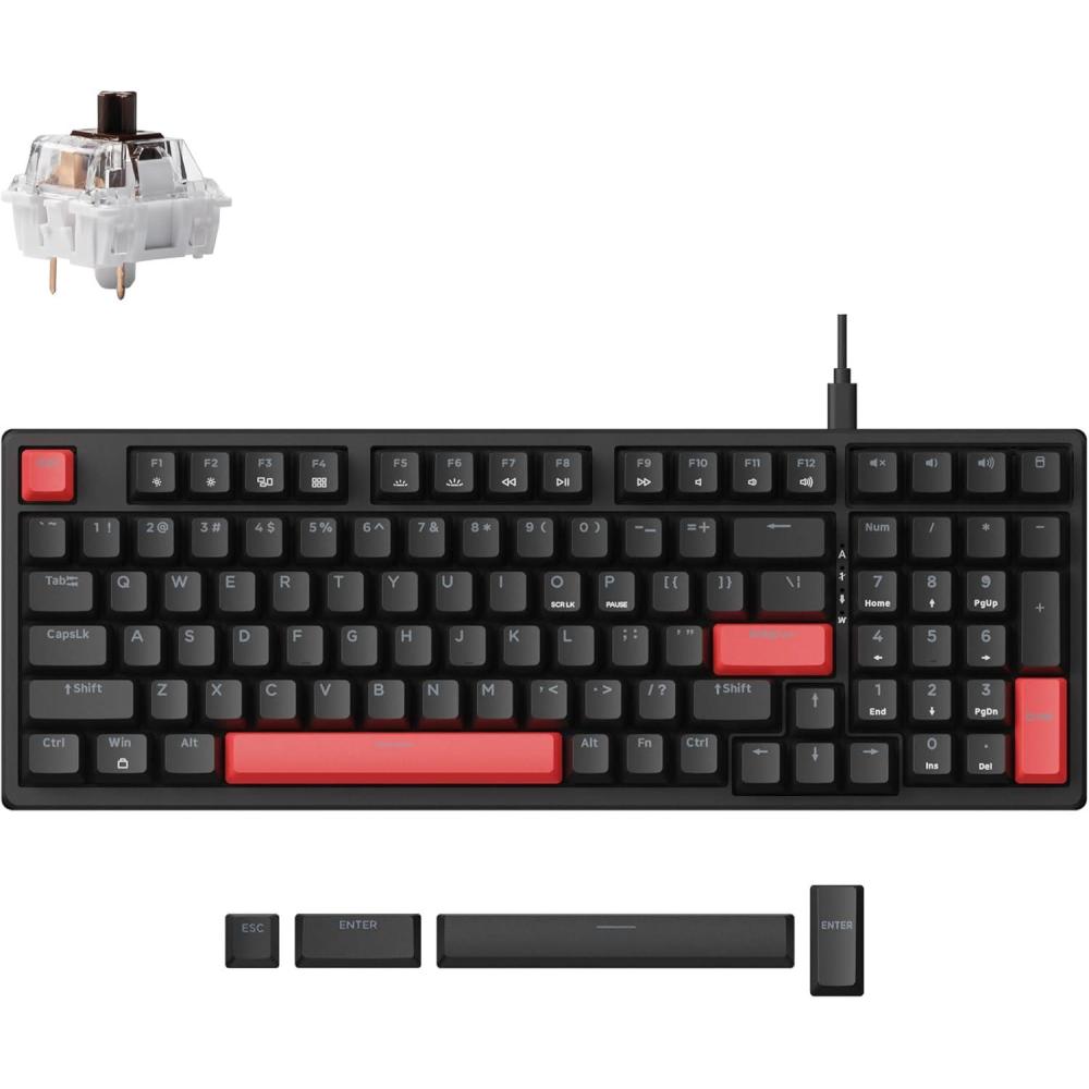 LEMOKEY X5 Wired Gaming LED Backlight QMK/Launcher Mechanical Keyboard for Windows/Linux, Customize keymaps, Double-Shot keycaps, Keychron Mechanical Brown Switch, Perfect for Both Gaming and Work(Keychron Mechanical Brown Switch)