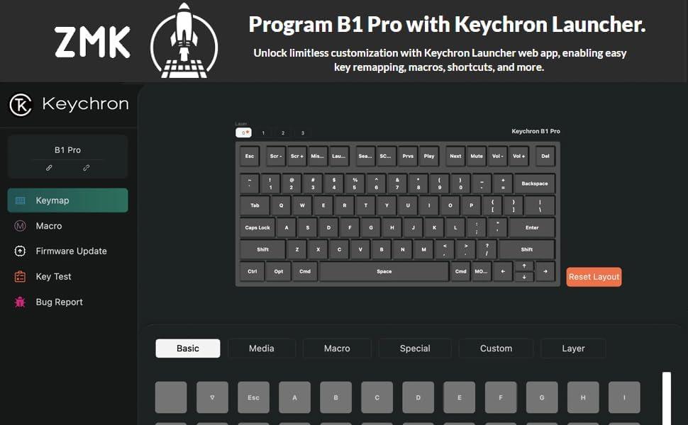 • Keychron B1 Pro Ultra-Slim Wireless ZMK Custom Keyboard, Programmable Bluetooth/2.4 G/Wired Lightweight with 1200-Hour Long Battery Life Quiet Key for Mac/Windows – Space Gray(Space Gray)