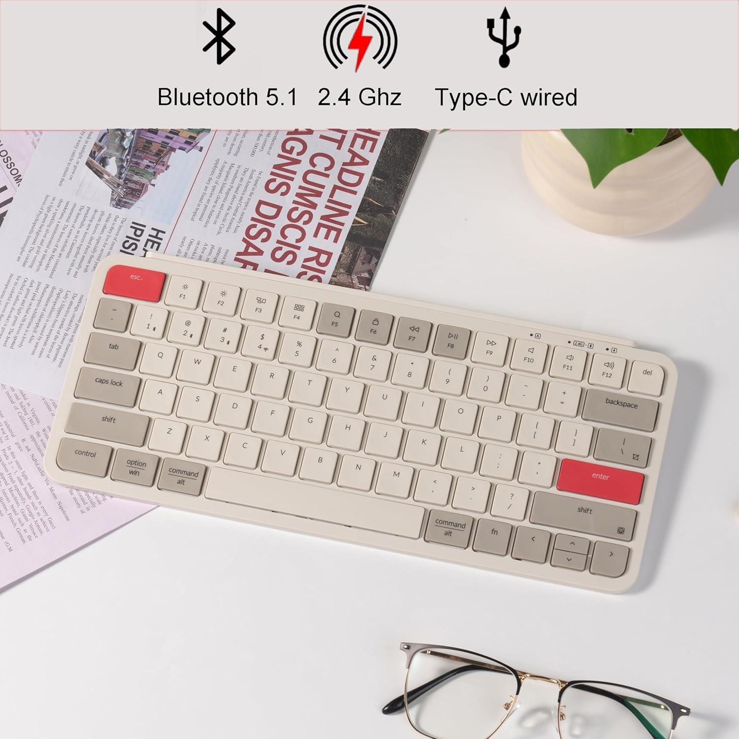 • Keychron B1 Pro Ultra-Slim ZMK/Launcher Wireless Bluetooth 2.4 GHz/Wired Connection Keyboard for Mac Windows Linux – White(Retro Blue)