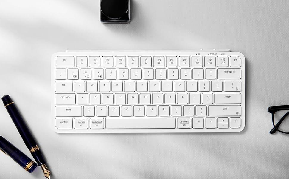 • Keychron B1 Pro Ultra-Slim ZMK/Launcher Wireless Bluetooth 2.4 GHz/Wired Connection Keyboard for Mac Windows Linux – White(Gray)