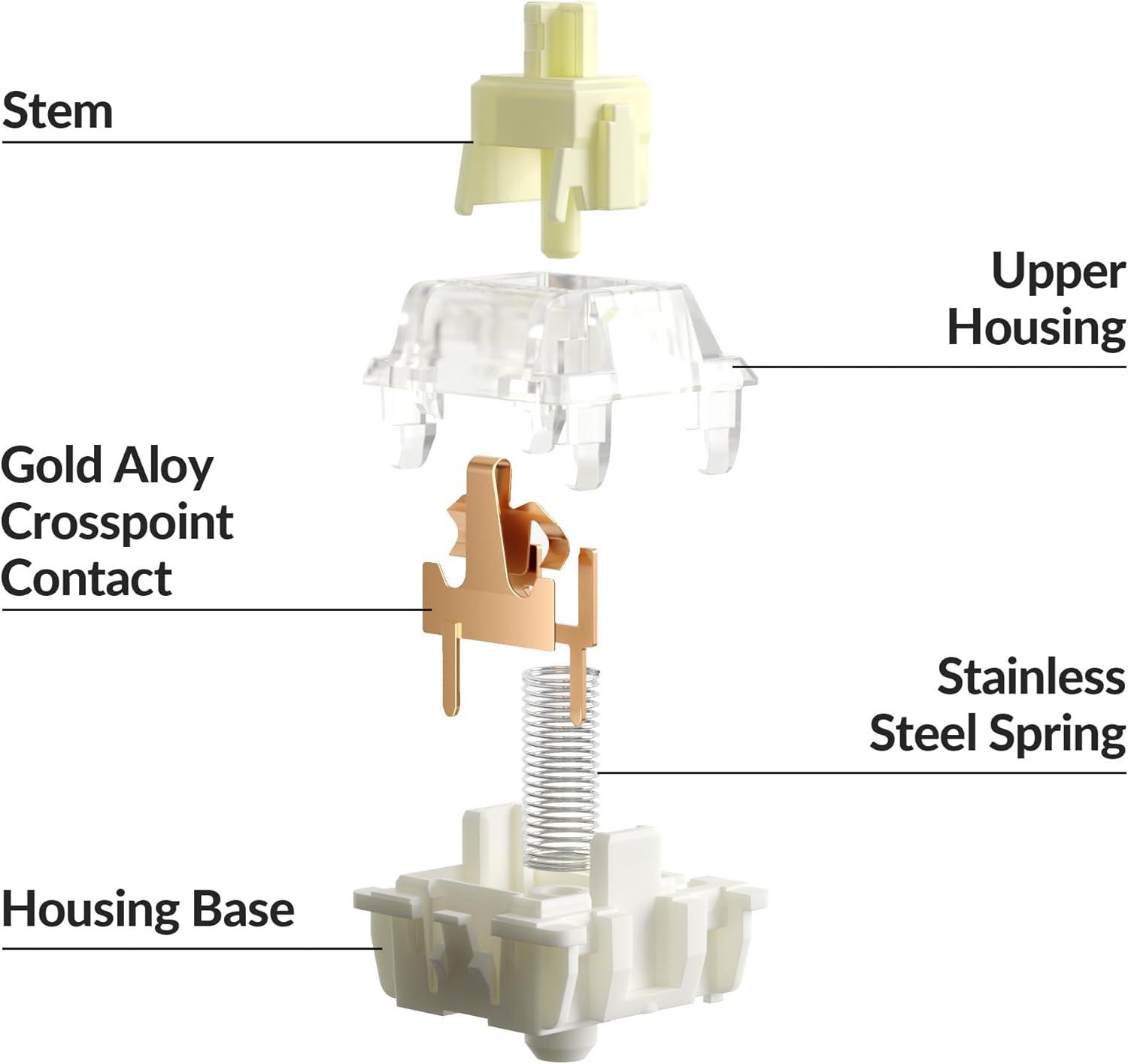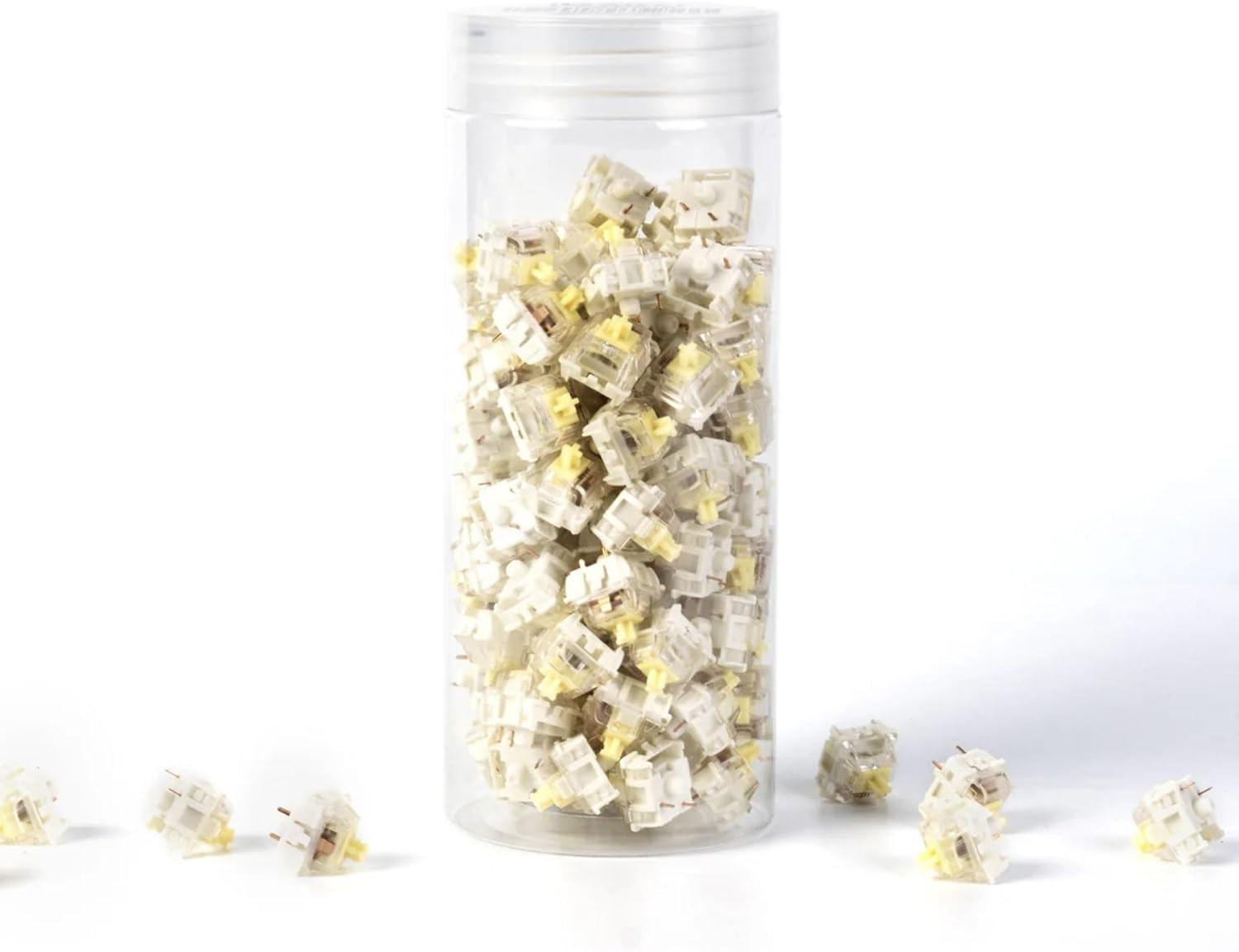 • Gateron Jupiter Switch Set – 110PCS Banana Tactile Mechanical Switches, 59gf, 3.4mm Travel, Gentle Sound, Pre-Lubed, Two-Stage Spring, 5-Pin, SMD-LED Compatible, for Gaming & Office Keyboards