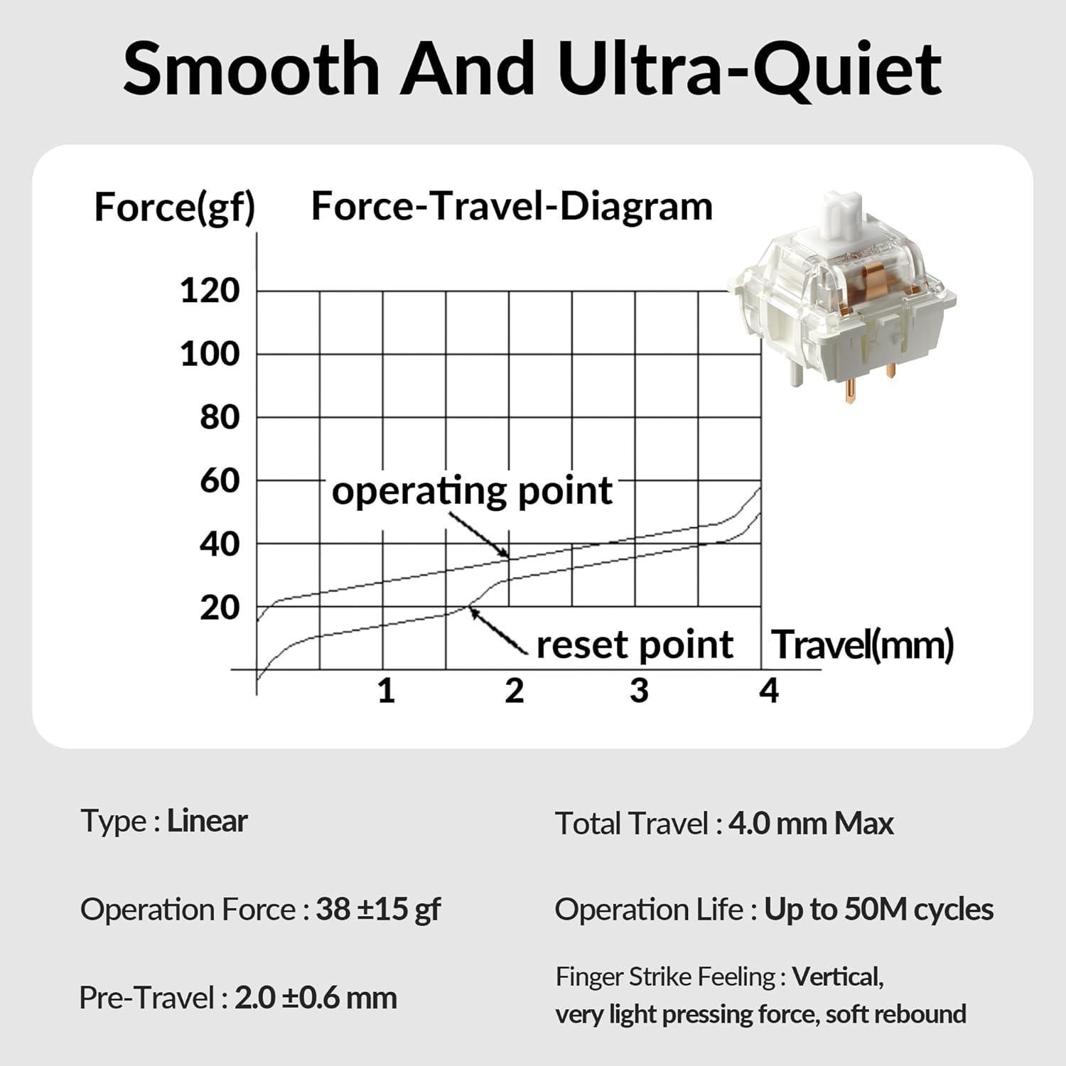 Gateron Silent White Linear Mechanical Keyboard Switches, 110 PCS, Smooth POM Stem with Cushioned Pads, 5-Pin SMD, 38gf Quiet MX-Compatible for Gaming & Office(38gf White)