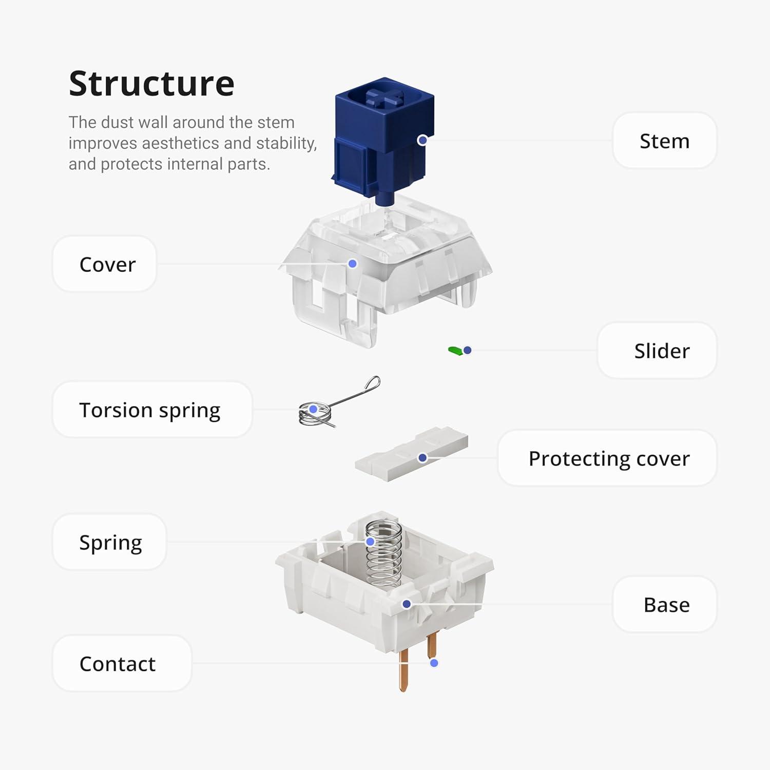• Kailh Box Navy Mechanical Switch Set – 110PCS Clicky Switches, 75g Actuation Force, 3.6mm Travel, MX-Style Stem, 3-Pin, SMD LED Compatible, for Typists, DIY Builds & Custom Keyboards(75gf Box Navy)
